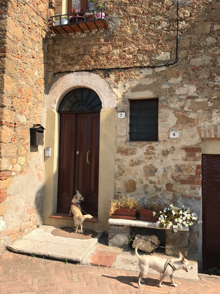 托斯卡纳就是一个这么迷人的地方,你可以任由思绪行云流水般地飘荡。那清新空气里尖顶静谧的教堂,门前对你摇着尾巴的小狗,摆放着蕾丝花边的路边小店,从烘培屋里袅袅散漫出的新鲜清淡的香味,在伞下似有似无喝着咖啡的人们,一切都那么在恬静里慢慢地在你身边定格成一幅幅优美的图画。你徜徉在其间,不必做什么,真的不必做什么,就这样任由时光流淌,而你的心却一点点充盈修复起来,你对自己对整个世界缓缓地微笑着,一切都那么美好!