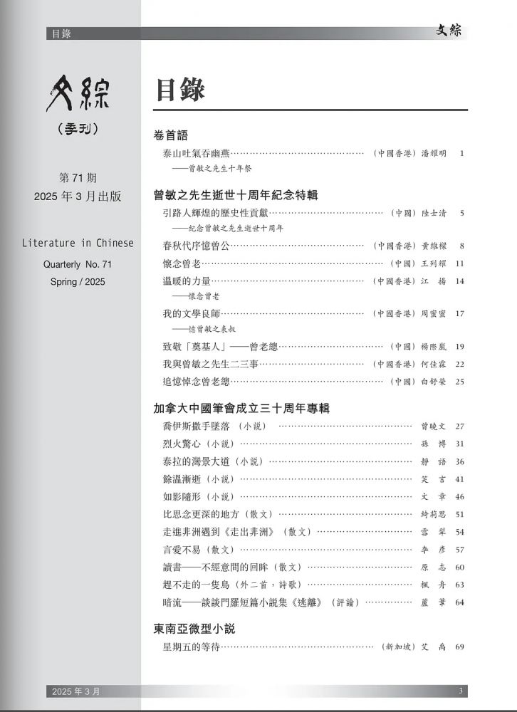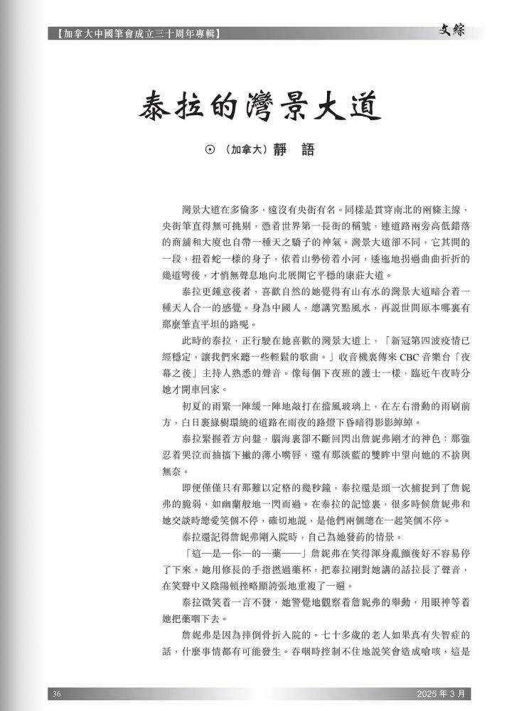 短篇小说《泰拉的湾景大道》发表于《文综》杂志2025年春季号3月第七十一期。