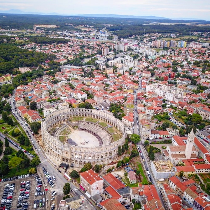这次有幸见识到了这两座古迹,航拍到了一些珍贵的照片,说到航拍欧洲,好多地方都是禁止的。在克罗地亚我们也是躲躲闪闪的拍下了诸多美丽的城市。这张竞技场的航拍照给大家分享。