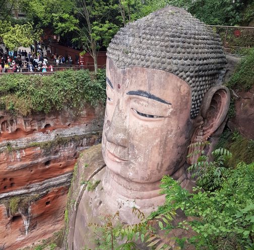 乐山大佛位于大渡河、青衣江和岷江三江汇流处,是世界最高、最大的古代石刻弥勒佛像,与凌云山、乌尤山、巨形睡佛等景点共同组成乐山大佛景区。这里依山傍水,风光旖旎,自然和文化景观和谐统一,构成一幅多姿多彩的山水画卷。1996年,峨眉山—乐山大佛被列入《世界文化与自然遗产名录》,成为中国西部地区唯一的世界文化与自然双遗产地。由于三江汇流,每逢夏汛雨季来临,三条大江汇聚在凌云山下,汹涌的水势常常造成船毁人亡的悲剧,成为殃及地方的祸害。由此,海通禅师决定造佛治水,治理水害威胁,普渡众生脱离苦境,造福百姓。