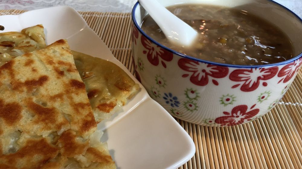 Costco买了一大袋,吃习惯了,还不错,尤其是包在煎饼里的熟洋葱,吃起来甜甜脆脆的,加上香酥的饼壳,再来一碗绿豆大米粥,妥妥的一顿健康营养早餐。