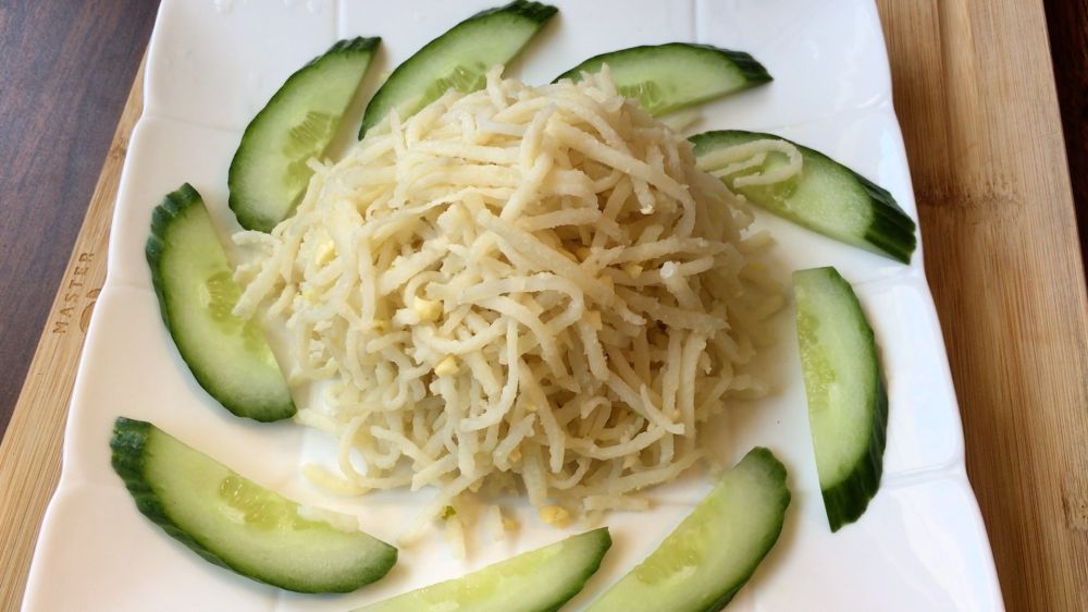 10)冷却后,拌上自己喜欢的佐料,就可以吃了。
