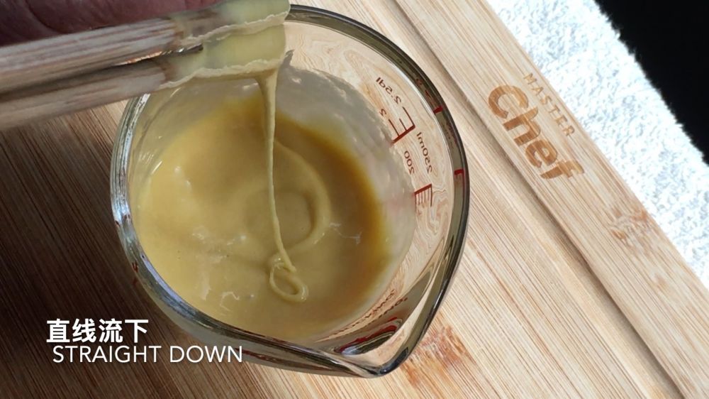 关键就是面糊的配方,这次,我用了一个大鸡蛋,蛋液大概1/4杯,加了1/4杯中筋面粉,又加了1/2汤匙清水,调好的鸡蛋面糊,流下时成一条连续的直线,太稀太稠都不行;再一个就是要慢慢往锅里加面糊,尽量把面糊拉成直线,避免面条沾锅。