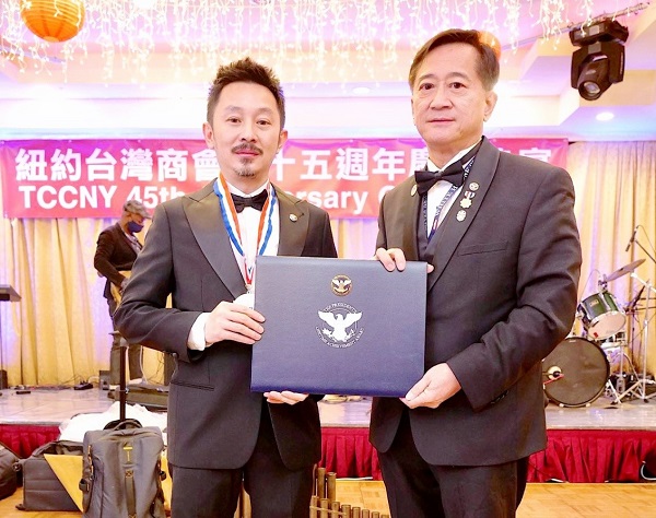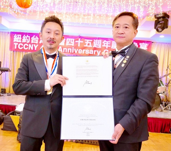 江俊霖博士(Joey Chunlin Chiang, Ph.D.)榮獲白宮總統最高榮譽獎項,頒獎典禮於紐約台灣商會慶祝四十五週年慶祝晚宴上舉行,由駐紐約台北經濟文化辦事處處長李光章大使(Hon. James K. J. Lee)暨朱林驥博士(Jim Lin-Chi Chu, Ph.D.),代表美國亞裔非營利機構策略聯盟總召集人,前美國聯邦商務部及交通部峰田?諾曼部長(Hon. Norman Y. Mineta)和名譽理事長趙美心國會議員(Hon. Judy M. Chu, Ph.D.)頒贈。現場轉致白宮拜登總統賀函、最高榮譽勳章及證書,以表彰並肯定江俊霖博士長期服務美國社會的貢獻。現場貴賓有;紐約文教中心陳永豐主任,駐美投資貿易服務處丁偉主任,紐約州參議員劉醇逸(Hon. John Liu),紐約市議員顧雅明(Hon. John Liu),紐約中華公所主席于金山,世界台商總會王德總會長,北美洲台商總會張聖儀總會長等人。