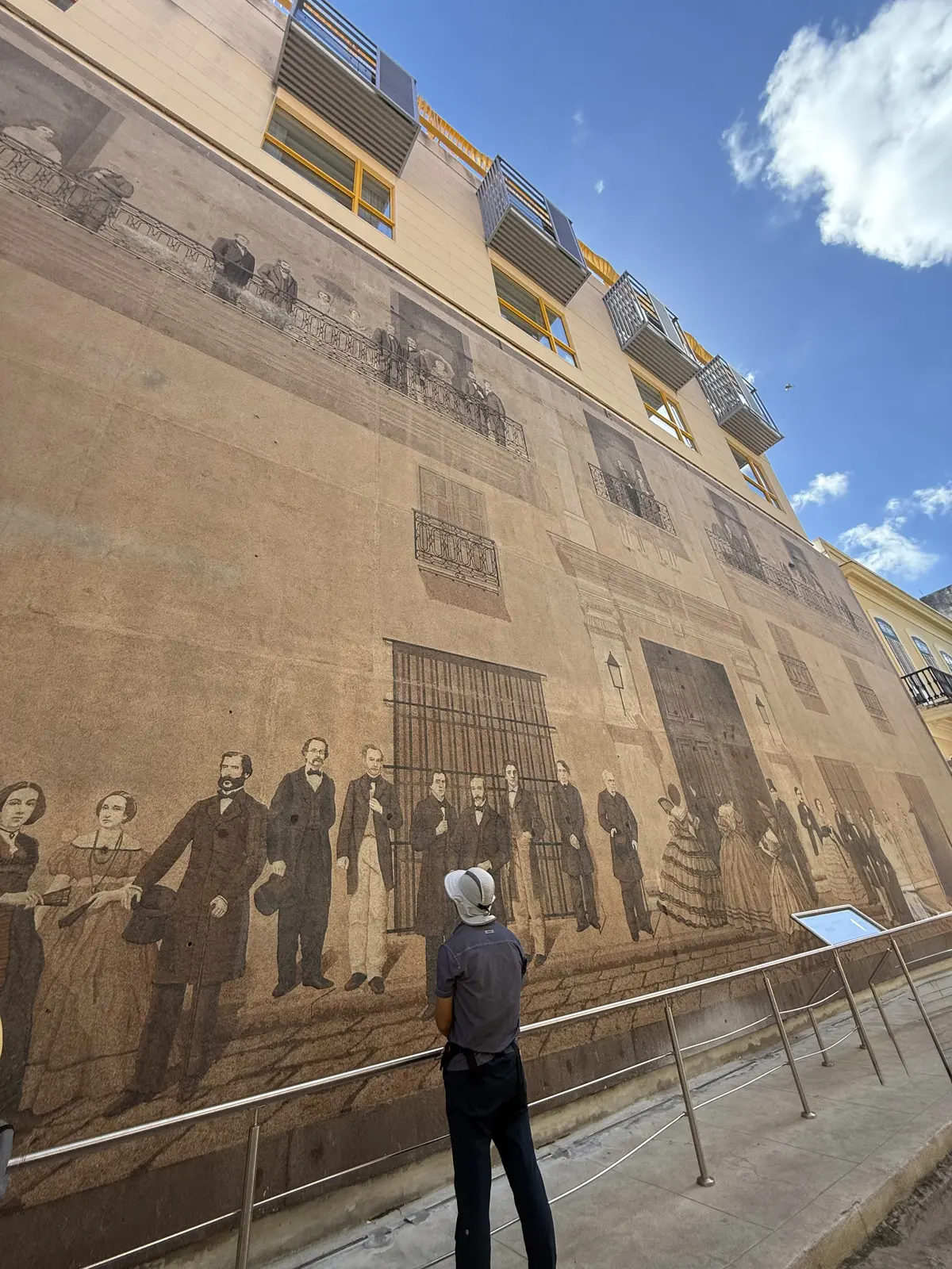 印象很深的一条街道,建筑物上有画着一群穿着华丽衣裙的贵族绅士和太太聚会的隆重场景,据说是来源于100年前在这里一次聚会而绘制在此,由此纪念那时的兴盛。照片如下: