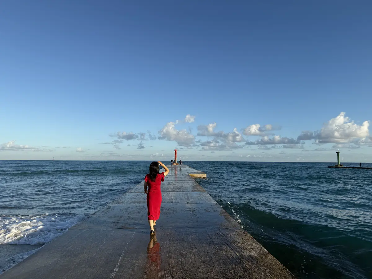 我终于可以去蓝色的泳池了,天太热 ,上午的时候感觉不应该去,水温还没达到理想,下午五点本该好好玩耍,泳池要下班了,导游说的国营单位,就是牛!所以我就是进到水里泡了几下下而已。不过我还是跑去了最近的沙滩,欣赏了日落,沙滩比起坎昆的沙滩有点差,太贴近大自然了,蚊子不小心就会盯上我,我只匆忙照了几张照片,最最喜欢这张红色的背影!