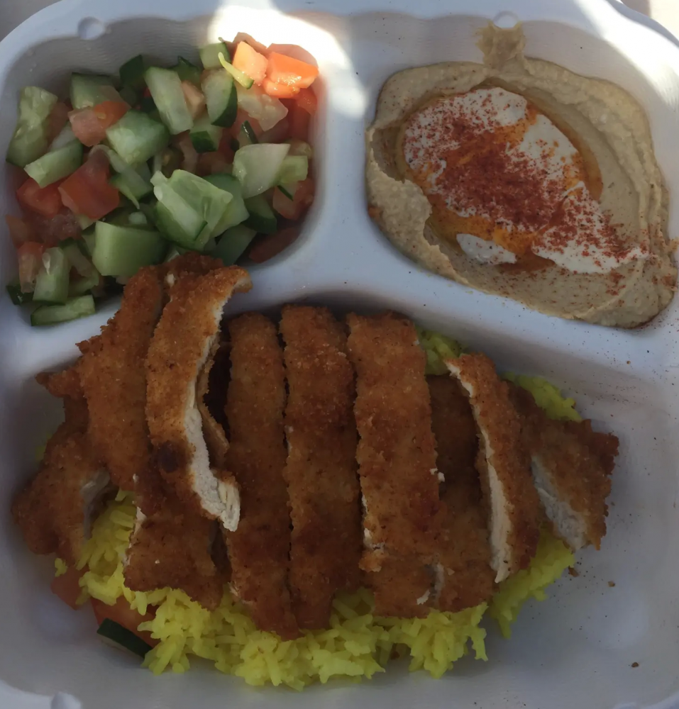 卖饭的是一家以色列人,收银员是他们家大女儿,大概11、12岁的样子,她在熟练地收着钱,爸爸边唱边做饭,时不时探出脑袋指导一下收着钱的女儿,妈妈默默地在后边调菜,照顾着小女儿,辛苦而又温馨的一家人。