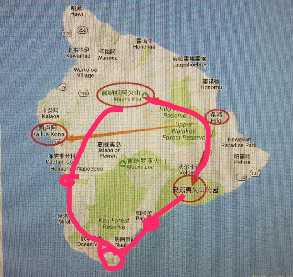 27日的夏威夷大岛一日游:从9点开始出发,到晚上十点到家,整13个小时,车程6个小时。