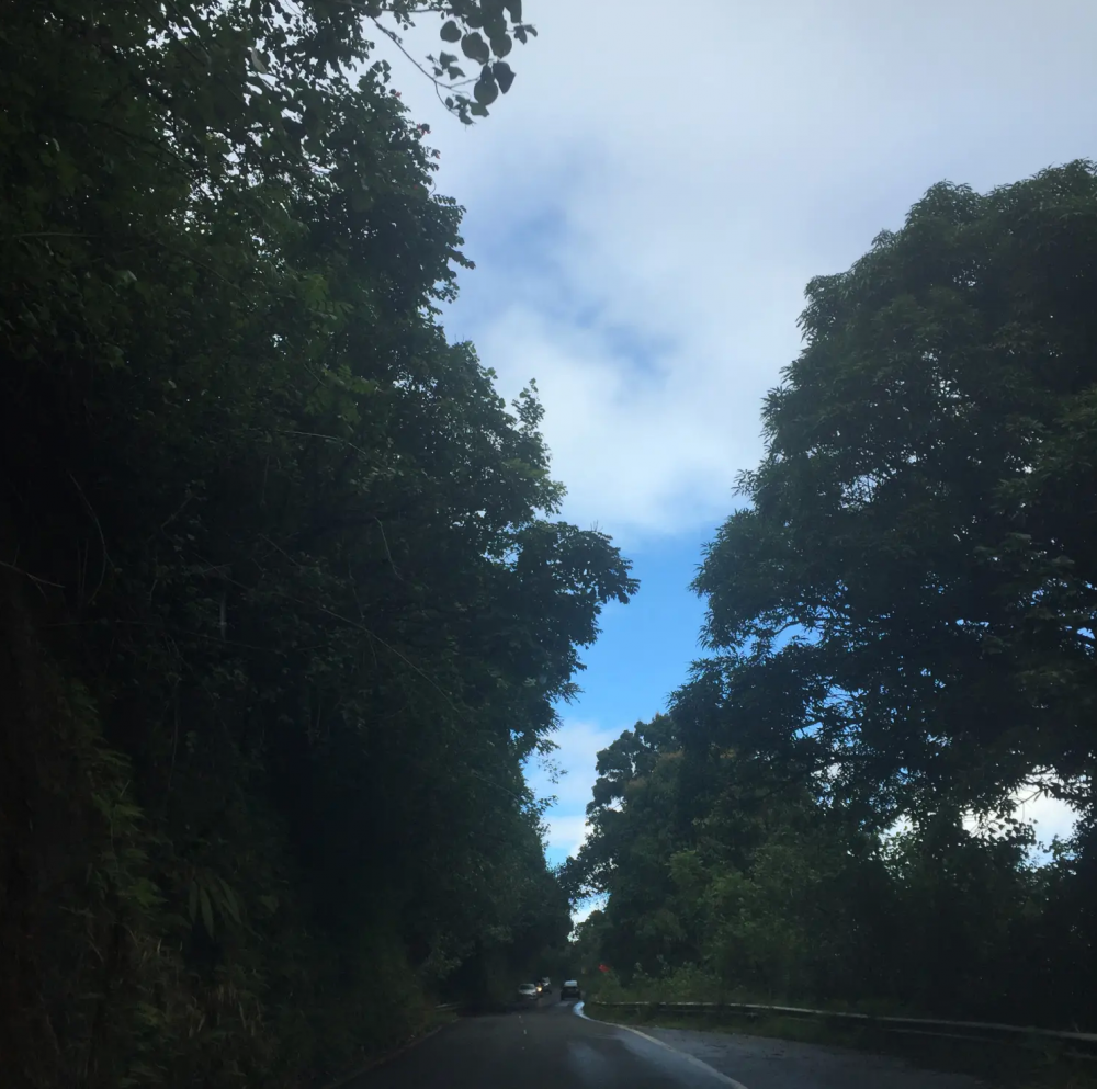 时间一点点消失,上山的行程却怎么也快不了,有限速,也有很多单行道,就算想快开也不敢。哥哥兴奋地拍照,热带雨林,山间瀑布,悬崖峭壁边缘一线天,深山幽谷,奇花异草……