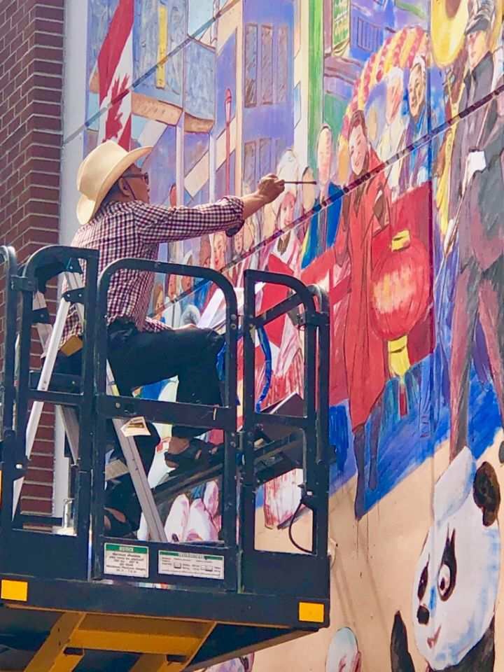 Arthur Cheng, 程树人,是一位来自中国上海的艺术家。确实,在这之前,他已经在唐人街创作了壁画“百年风云”和“历史瞬间”,制作了华人先侨纪念碑和中华门浮雕,为唐人街增添了浓墨重彩的篇章。卑诗省温哥华岛壁画镇也有他的壁画和雕塑作品。