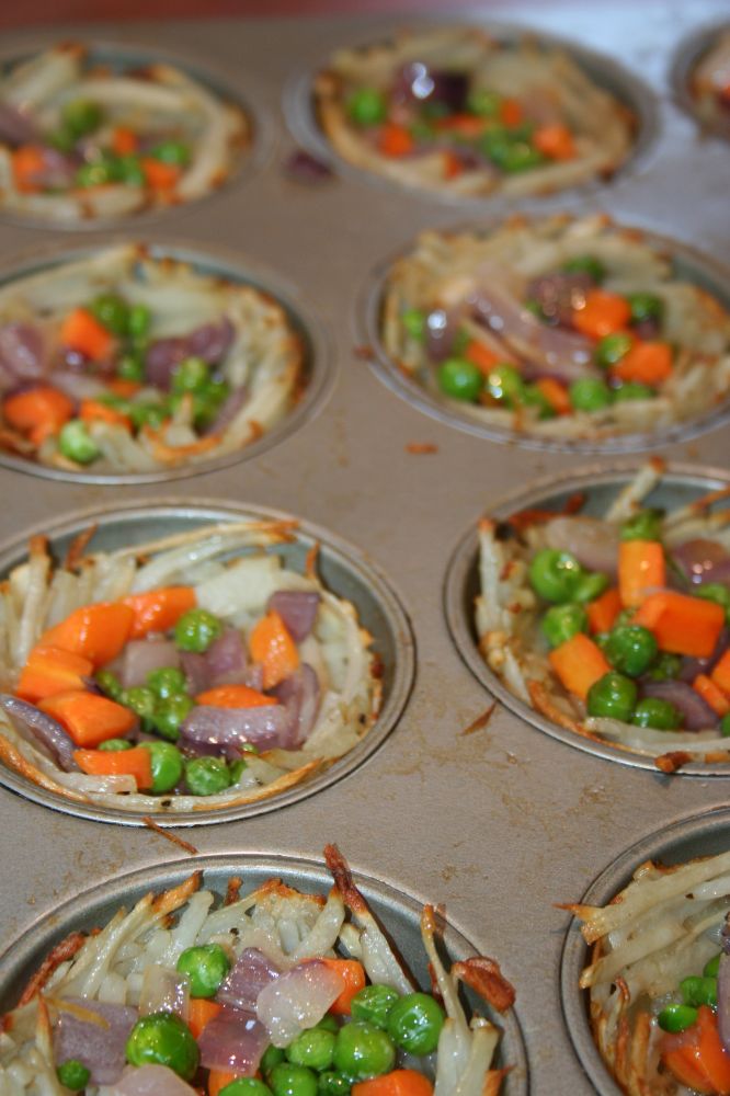 - 每只烤碗里放半杯上面的土豆丝。