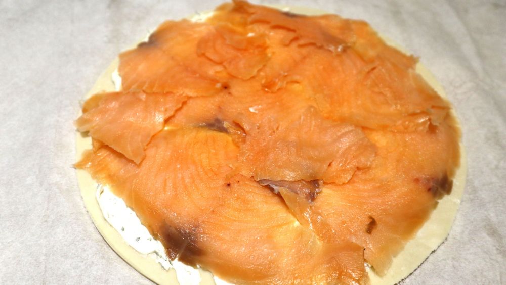 将三文鱼铺在上面。