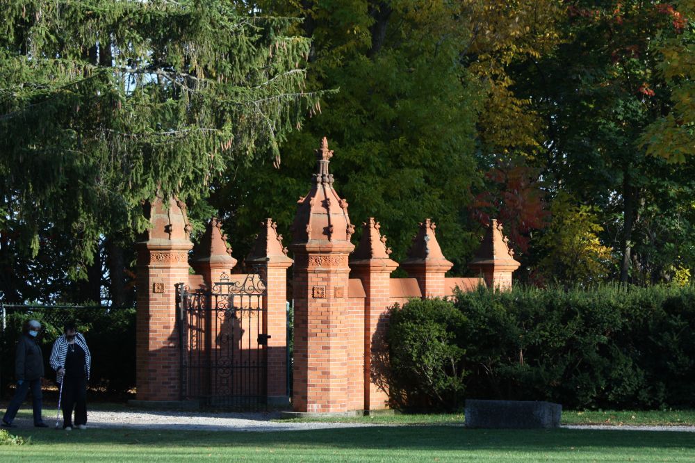 20200929_164807: 公园南门入口的赤土尖塔塔柱来自 农产品交易大楼Produce Exchange Building (1890);而通向世嘉堡悬崖的铁艺大门来自Gibson House, 它们被完美地组装在一起。