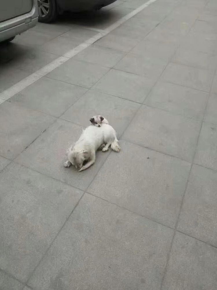 亮亮是流浪二代,小时候跟妈妈一起吃百家饭。当时他和妈妈一起爬在停车场,也许是妈妈精疲力尽,也许是哀莫大于心死,看见车来车去,妈妈并没有躲,就在那里待着,蜷在那里,小亮亮当时最多就两三个月大,挤在妈妈身边,也是一动不动。抓他们的时候也没有反抗,而是一副认命的神态。亮亮妈妈流浪了多久,什么时候生的娃,生了几个,他们的下落都不知道,也不知道娘俩经历了什么,被救助后就送去了基地。那里条件很差,唯一能保证的是不再受人的伤害,但是生存环境,温饱依然是个问题。好在遇到一对好心年轻人领养了亮亮妈妈,但是他们坚决不肯一起接收亮亮。带走亮亮妈妈那天,两人都叫了很久,据说亮亮是那种类似婴儿哭喊的叫声。现在想起来了一脸的泪,替亮亮难过。