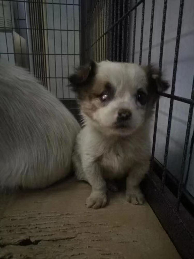 本来说好英国那边接收亮亮,后来一直没有找到收养人,加上缺飞行志愿者,每次带那些有收养家庭的都带不过来。亮亮就这样耽搁了,再后来我同学说,亮亮不能在蹲笼子了,已经四个月了,8月份的时候只好把亮亮跟其他四个毛孩一起挪到的私人救助小院,跟阿星他们一起。到小院的时候,我也在,那时亮亮被我同学他们喂得胖墩墩的,有9公斤。一放进圈儿里,看见亮亮那个样子我就特别担心,他胆子太小了。吃饭时不敢上去,要等到其他人吃完了太才敢过去偷偷赶紧吃几口。没有办法,只好拜托小院的人多盯着点,隔三差五还要给亮亮上眼药水,清洁眼窝。
