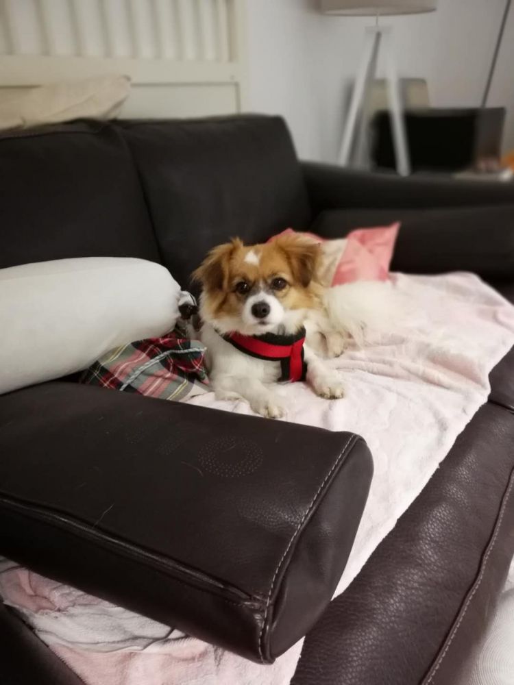 小花非常亲人,但是也许是流浪太久了,小型狗为了活命不得不小心谨慎。所以小花很警惕,看见我时先站在其他狗后面观察我,看见我挨个抱他们,最后轮到她。 到我家后,她总是最后一个上床,不声不响地找个地方躺下。