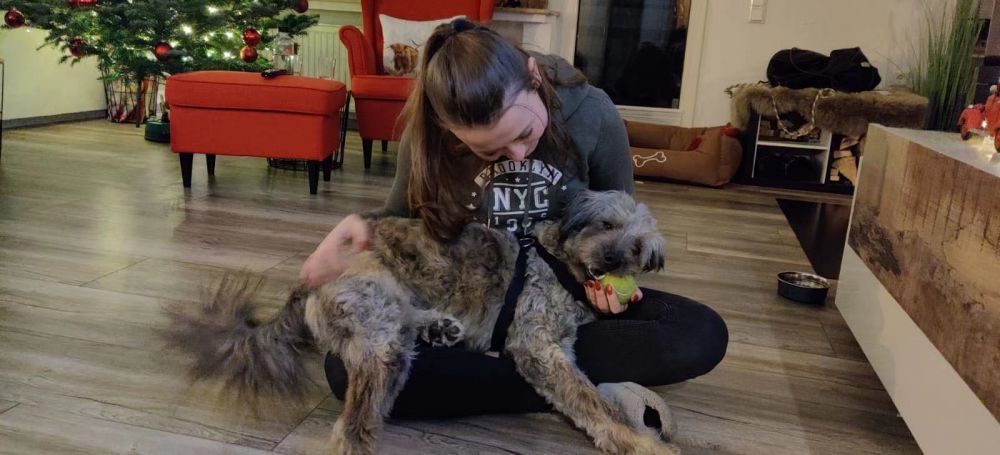 默默是几个月大的时候捡到的,本来计划是今年1月麻烦多多或者旺财球球娘带过来,结果因为疫情停航滞留到现在。 默默的收养人等了整整一年,每个月都问我有没有新照片新视频。可惜也许是我做得不够周全,我想给这对夫妇一个惊喜,没提前告诉他们就带默默过来,等在我的兽医那里检查,打完疫苗换好疫苗本的时候才告诉他们。他们当时在电话里一下子就没声了,我还以为线掉了,Hallo hallo好几声。 他们激动得都说不成整句了。 第三天我就开车送默默过去。这对夫妇也许等得太久,对默默的无限期待中想象着默默这样那样,经常看默默的照片和视频。在他们心目中默默已经到家很久,一直和他们在一起。 问题也出在这里。 通常收养家庭,至少父母一方会休假一两个星期陪毛孩过度。默默是突然到的,在他们心里默默一点都不陌生,当天晚上默默一直在门前表示出要回家,妈妈带他进客房陪他睡了一晚,默默夜里渐渐安静下来,还上床靠着一起睡了。第二天早上妈妈就去公司半天处理点事,走前还遛了默默。走后,这家爸爸就迫不及待地要跟默默套近乎,虽然默默表示拒绝,可以这家爸爸不死心,还是缠着默默想表示友好,默默就跟他急了。 他素手无策给我电话,我告诉他,给默默时间,让他一个人待着,等他有安全感了,自己会去找他。放下电话没十分钟,电话又进来了。这家爸爸说,趁我们电话时,默默去到卧室在他们的床上拉了一大堆,等他跟我打完电话找默默,发现默默躲在柜子后面偷看他,然后闻到臭味,顺着臭味摸到卧室才发现。默默看见他发现了,也从柜子后面出来,远远地看着他。 他只好先收拾床,然后把窗户打开换空气。说时迟那时快,默默带着助跑跳出窗户就跑了。听得我肝一颤,告诉他我马上开车去。扔下电话我就开车出门了,一路猛踩油门,160公里被拍下来两次,也顾不上是罚款还是扣分了。 人生地不熟,这要是跑了,很难找,况且默默也不熟悉那里,对他来说没有一个归属,跑出去很难找回家门。一路跟他们打电话,请他们马上跟邻居联系,让大家注意。 好像脚就没离开过油门,到了他们家他们刚刚在外面找了一圈回来。我们又出门分三路找。头天晚上过去时天黑看不清,这大白天的我才看明白,心里凉了多半节。四周除了森里,马场,就是农田,草地,东南西北中,哪个方向都有可能,这怎么找啊!而且开始降温,默默没穿外套,森林里还有野生动物,急得我们,真是比自己丢了都着急,热锅蚂蚁一样。 正扯破喉咙喊着,默默妈妈举着手机朝我跑来,邻居的邻居的朋友的邻居发现并抓住了默默,在我找他的反方向。我跑回他们家,开上我的车带着默默妈妈往那家开。一路上,默默妈妈声嘶力竭地对着电话喊,拜托拜托千万别松手!到了人家一看,默默没事人一样跟那家小女孩在玩。 气得我真想呼他一巴掌,急死妈了!默默妈妈也急得眼泪下来了。带着默默回到那家,默默是坚决不下车。我进屋跟他们商量,默默爹彻底失望,跟我一连串的抱歉。其实该抱歉的是我,想得太简单了。如果我回国前告诉他们,他们提前安排时间可能不会发生这样的事情。也许默默跟他们缘分不够,我开车带默默回科隆。自此默默警惕性极高,看见生人来就立刻贴着我,坚决不让生人摸他头。