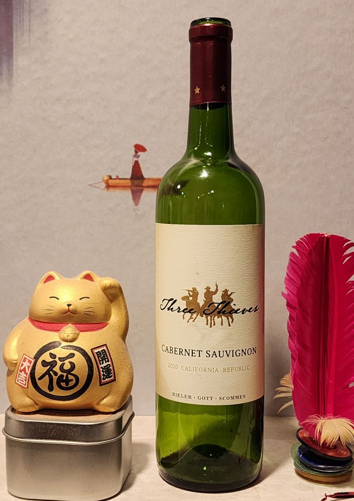 ThreethievesCabernetSauvignon2020CaliforniaRepublic深紫红色的酒体,飘逸出浓郁的果香,甜润顺滑的口感充满了蓝莓和黑樱桃的复合果感。[