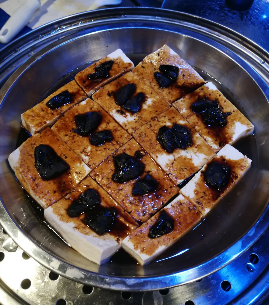 蒸豆腐:豉油皇蒸豆腐是初级版;再往豆腐上加料(如:虾,带子,肉类等)去蒸,就成了升级版。