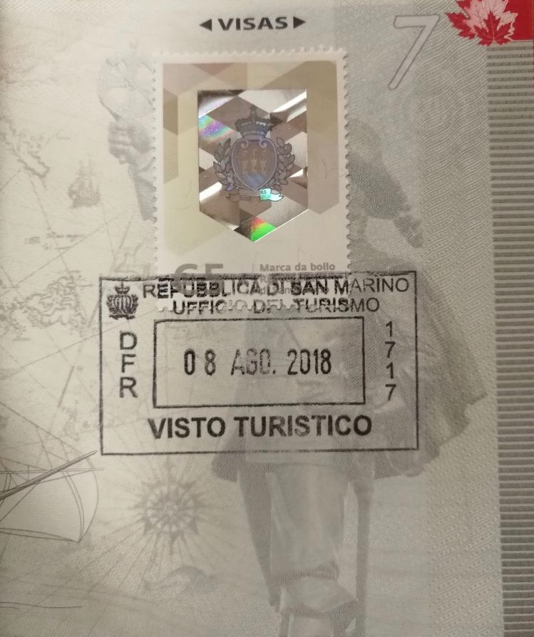 圣马力诺政府提供游客5欧元的章和邮票, 可以加盖在护照上, 儿子和我兴冲冲地拿到了自己想要的。