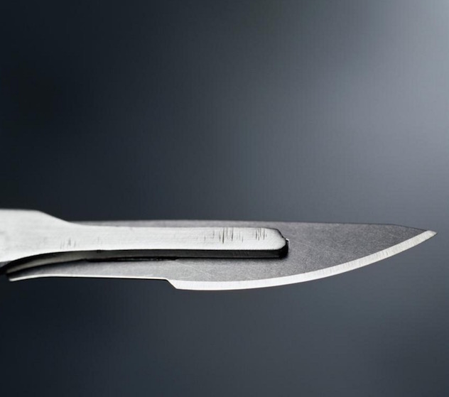 走进走廊尽头的小屋,室内光线泛着乳白,不算太刺眼。关上门,环顾四下。门边一张小小的床,上面铺着一层纸,床边两张椅子。几个托盘在滚轴托架上,里面有各类器具,刀,剪,钳,针,线,棉,纱,酒精与床呈现弧面排开,床尾处有个空档,屋内气味没有多少异样。