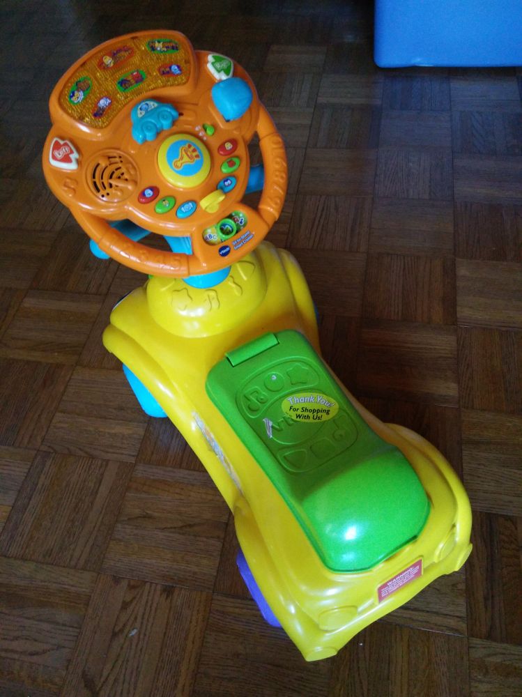 为上一篇博文补充2张照片。外孙女情商高啊。她能感到哥哥坐着那辆蓝色玩具小汽车肯定不舒服,并立刻采取行动。一边念叨着“哥哥,哥哥”,一边把这辆专门坐骑的小花车从另一个房间推着送给在客厅地毯上玩玩具的哥哥坐。