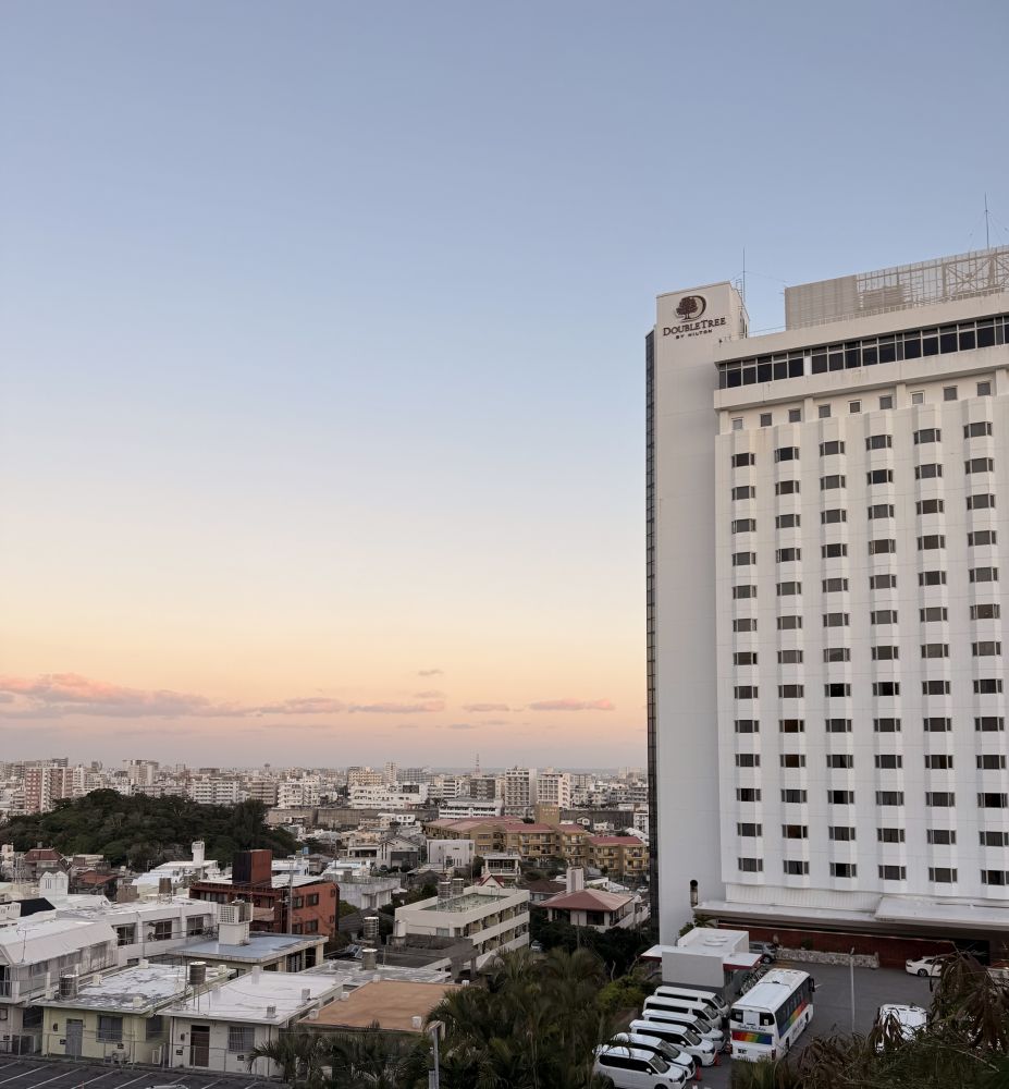 日本列岛从南到北我都跑遍唯独冲绳没来过。飞机下降之前金色夕阳映照舷窗甚为壮观,不由想到圣歌里唱的《云上太阳》。无论云下如何翻滚变幻云上太阳每天照常升起有何之惧呢?2025年经历过病痛失业和早退,希望2026年新年新气象!那霸机场符合我对地方机场的预想。只是功课还是没有做好:除了准备入关个人信息RQ二维码还应该事先线上取得报关二维码。好在那霸游客人少最后形成通关人员等待我们的局面。出机场第一件事就是搞定电话卡。本次在冲绳计划住20来天只能选择30天流量的卡了。不便宜,8500日元,相当于54美刀。队友后来在网上买了个$11/一个月的卡一样用得很好。所以落地后最好用机场的WIFI线上买好电话卡再出来。以前在东京大阪坐出租我可以使用微信支付,但那霸机场出租车司机说不行只好用了现金,其实我可以用国内滴滴打车,但当时着急赶路忘了这一茬。这次我们在冲绳的住宿是用希尔顿信用卡赠送的点数预订。住的是Doubletree by Hilton四星双床景观房,视野极好非常满意。WXC卧虎藏龙,在城里跟着达人们学撸卡撸出了新高度,嘿嘿!