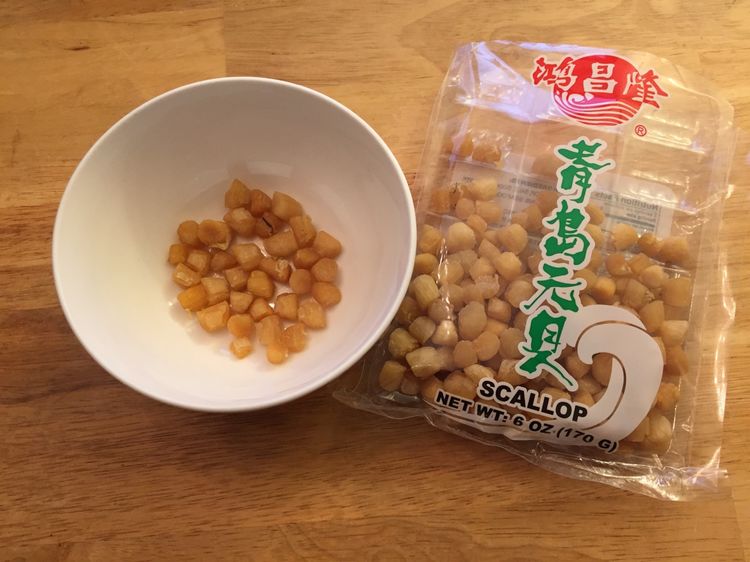 吊鲜最好是圆贝,我的山东朋友叫它瑶柱。温水泡15分钟。
