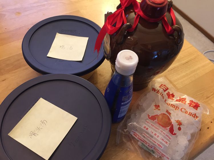 网上研究一下,顿时泄了一半的气。居然要十几种食材和调料!纠结了好久,不甘心放弃,终于落子三连星--H-Mart、宇和岛屋、大华99,摊开了这局大棋。我每下一步--买一份食材,老公就来个劫杀--一盆冷水泼下来。比如买个牛筋,他说炖不烂;买个鸡胗,他说内脏不健康;买鲍鱼他嫌贵,买鱿鱼干他嫌麻烦。整整两个星期,我拖他到处购物,两个人一路唇枪舌战。等待料买齐全了,他已经盼着吃了。这次我给他一盆冷水:"想吃?至少再等一个星期吧!"呵呵,revenge is a dish best eaten when cold!