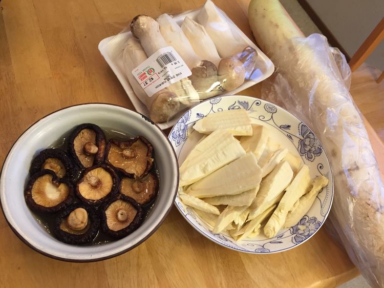 肉食开会,蔬菜旁听。我用了水发香菇(花菇亦可)、杏鲍菇、萝卜,还有鲜冬笋。