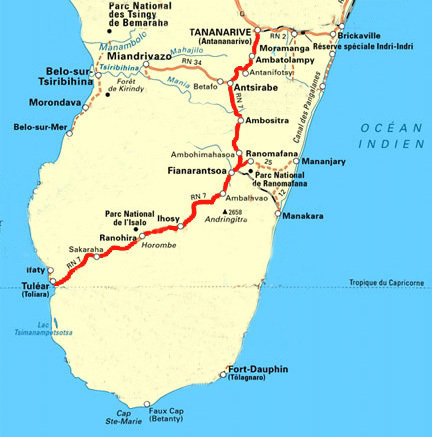 RN 7国道(Route Nationale 7),连接首都塔那和南部海滨城市图利亚,长度980公里,沿途有大大小小的几十个城镇和好几个热门的国家公园。