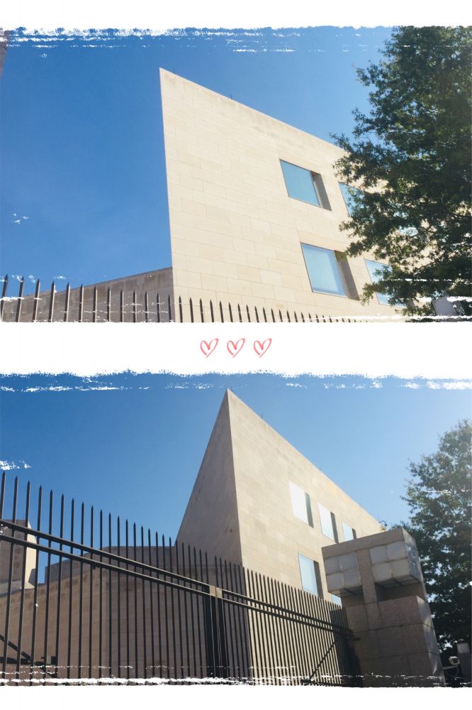 托学生的福,这还是我第一次去中国大使馆,以前都是去签证处。据说,大使馆的建筑是世界著名华裔建筑师贝聿铭及儿子设计的。我们去得早,在门口四处溜达,左看看右瞧瞧,随手拍几张照片。