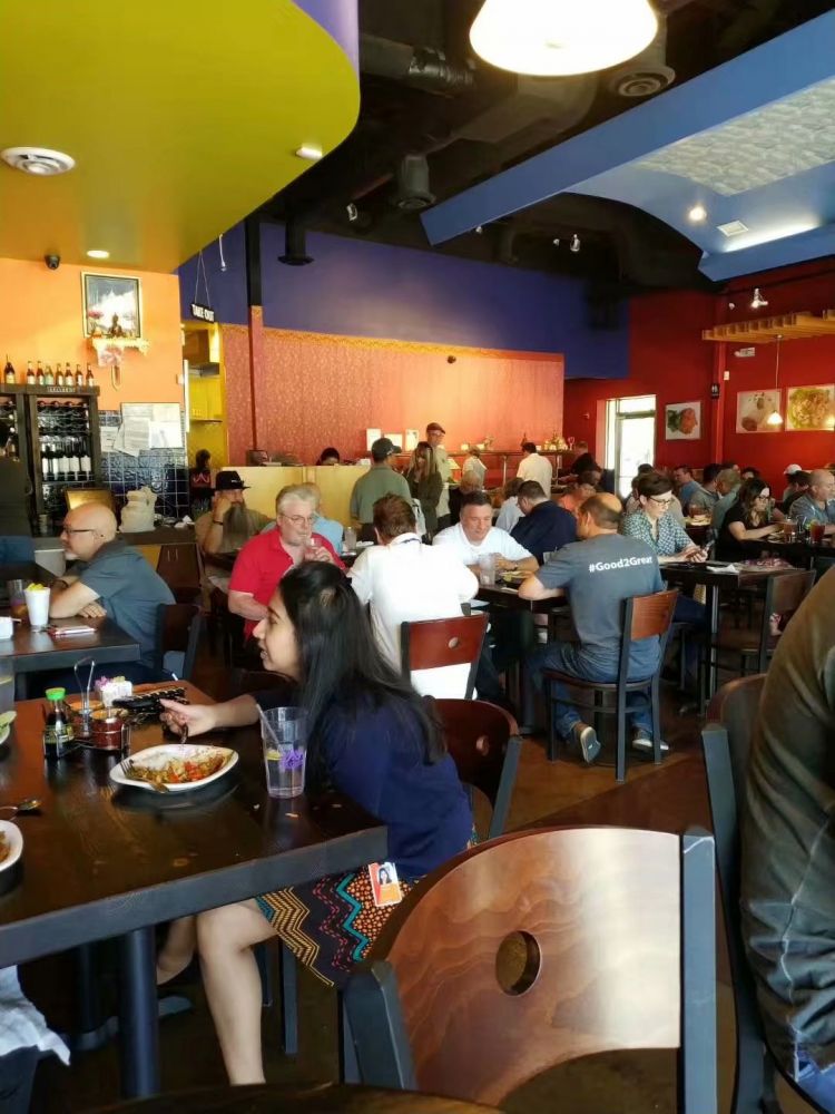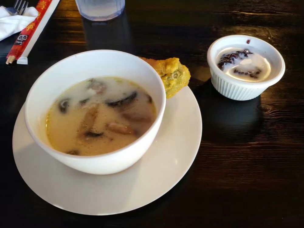 萨瓦迪卡,今天来体验的又是家泰国餐厅,West Parmer路上的Thai Cuisine。听这名字感觉是家极普通的泰餐馆,来了才发现午餐竟然爆满。吃过以后才明白为啥,原来它午饭除了点的一份饭以外,加一刀还可以无限量品尝它的汤、沙拉和甜点,外加Groupon上百分之二十返现折扣,简直不能再实惠了!点了一份今日特供红咖喱,大众水平,偏辛辣。亮点是它的炸蔬菜卷和椰奶红米羹,味道都还不错。只不过,我点菜出现了重大失误:饭、汤、甜点全加了椰奶,味道浓到让人觉得腻了。吃得还是很开心的,最后拿返现折扣的两刀付了小费,共计十二刀,相当于不赚不亏。冲它这福利叠加,本想给它个五星来着,但想着味道确实没独到之处,所以扣掉半分。评分四点五,午饭好去处。