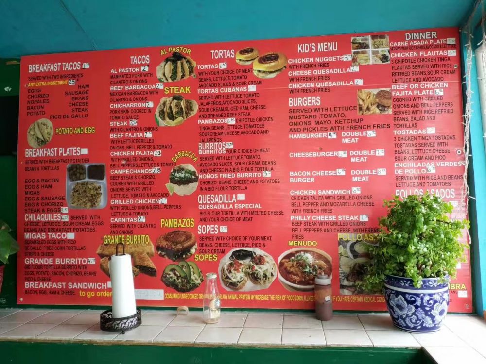 一如《广东爱情故事》唱出了富士康流水线工人相拥取暖后毫无希望的未来一样,要讲《得州爱情故事》典型人物形象就必须是墨西哥裔移民男女,场景呢,就可以设在这样的一个小馆子。这一类墨西哥小馆子在得州各大城市中广泛存在,多分布在治安较乱的低收入社区,因此铁栅栏变成了门面前必不可少的屏障,大多数餐馆不设堂食座位(像这一家有这么几个椅子已经算难得了),只提供打包,因为只有一间屋子,即厨房,在铁窗上开一个窗口,便算是前台了。负责前台接单的,多为家中年轻一辈的小姑娘。女孩子年轻时总是格外有吸引力,拉美裔身材发育又好,从小在市井间混生活让她们掌握了八面玲珑、笑脸迎人的技能,所以一颦一笑间显得格外妩媚动人。这类餐馆开得很晚,有些能到晚上十点十一点,以前我晚上饿了买夜宵有时会跑过来,却惊奇地发现,原来这些店子晚上也是生意的高峰期。因为有很多从事重体力劳动的人下班很晚,无家室做饭的很多时候就直接在这里买了带回家吃。这些建筑工人或货车司机,皆为拉美裔青年男子,点餐等餐的过程中少不了和柜台上的姑娘打情骂俏,眼波流动间擦出的火花就以我肉眼可见的速度蹭蹭往上窜。这样的小姑娘年轻时这么玩几年、约几年以后,免不了会在这些同阶级的青年中找个自己中意的嫁了。以婚姻为分界线,爱情结束了,生活开始了。一般在短短几年内就会连造几个娃,面对张着嘴等饭吃的一家老小,男的开始更加努力的工作,干完了回家躺倒就睡,有些甚至开始酗酒,女的年轻时身材有多好,生完孩子身材垮得就有多快,在餐厅中的活动区域慢慢由前台接待变为了后台掌勺,而接替她的要么是从墨西哥新过来的亲戚,要么是自己年长的女儿。如是往复,永无止境。