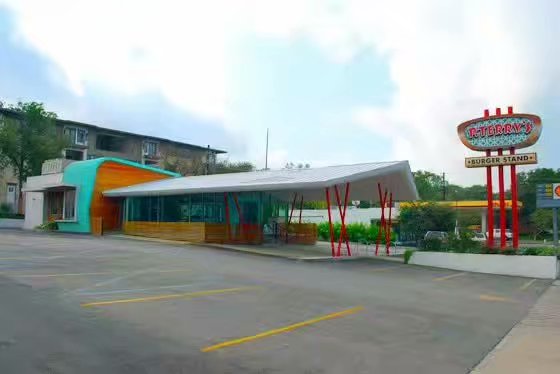 刚结束了自然瘦项目不久,花了这么大力气减肥,当然要好好吃点滋补的东西。碰巧看到这张美帝快餐排名榜单,所以决定最近把评估对象集中在汉堡,不过当然不会去麦当劳、汉堡王这种大路货,还是要去稍微值得评价一下的小众快餐店。今天来到的是一家名为P. Terry的汉堡店,这是一家在2005于奥斯汀起步的区域性快餐连锁店,主打产品就是汉堡。据说这家店的老板是在读了那本著名的报告文学《快餐王国》后深受鼓舞和启发,于是才下定决心,按照书里所讲原则来创办一家自己的快餐公司。这家店有三个特色:一是食材绿色健康,现在新开张的餐厅都喜欢打这一类的口号,所以也就没什么特别强调之处;二是店面风格独到,无论是色彩搭配,还是结构设计,都显得别具一格,路过这样的店面时,难免不会被它吸引走注意力;三是热心公益,这家公司每年有四天会把当天的全部利润捐献给慈善机构。虽然在每一条我上下班的可能线路上都有这家餐厅的分店,但今天还是我第一次来,所以没找对入口,没办法坐在店里吃。只能用最具美帝特色的汽车点餐打包方式进行购买。为了对其食物进行全面评估,我把普通汉堡、芝士汉堡和双层芝士汉堡各点了一个(当然不会一餐全吃完啦,不然这自然瘦白减了)。吃起来以后的体验总体还不错,虽然不是我喜欢的那种烤得偏老偏焦的口感,但比起一般快餐店还是要强不少,最大的优点就是——不腻。不管是牛肉饼还是芝士,没有说让我吃下去,立马产生头昏的感觉。总体吃起来比较清爽,而且它的酱味道也比较淡,不是那种一般味道偏冲的番茄酱。蔬菜嘛也确实如它广告里所说,都是当天从本地农场进来的,所以吃着很新鲜。评分:菜品口感:四颗星;菜品价位:五颗星;服务态度:四颗星;就餐环境:四颗星;总体评分:四颗星
