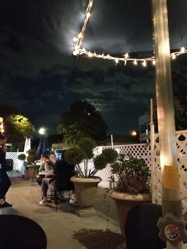 一走近发现这家餐厅是典型的中档休闲西餐厅,外面走廊种着月季,燃着火苗,挂着彩灯,放着三拍的拉丁舞曲,营造出一种浪漫的氛围,很适合割情侣的韭菜。