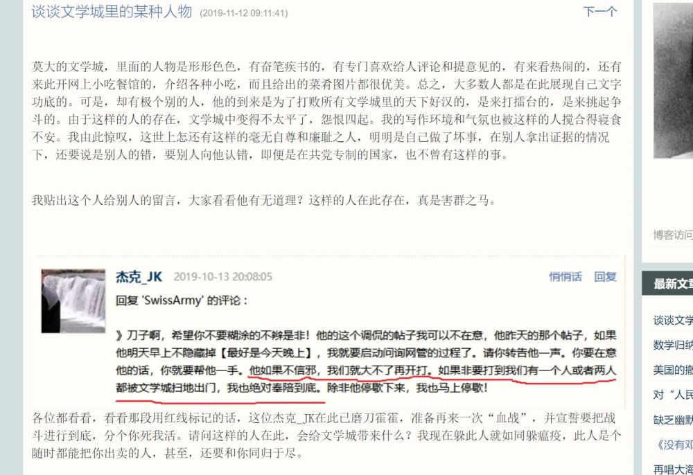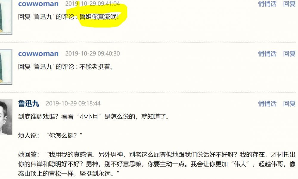 回复悄悄话回复 '北佛风光' 的评论 : 【鲁九你不要嘴硬。 你应该有自己骂人的记录。 你自己查一下 你在10月7号 12:28:11 骂杰克的话。 你骂的那些话后来让小编删掉了, 确实没法再让网友再看。 】