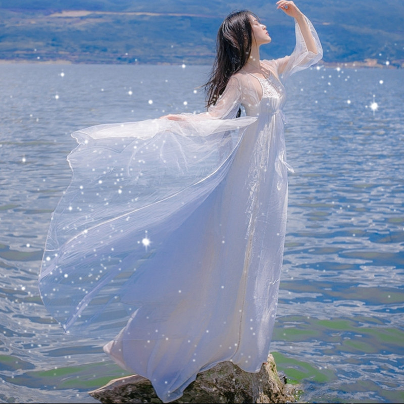 白色长裙一直是设计师与达人尽情发挥才能和败家的选择,也是摄影师追求卓越的偏爱。摄影师喜欢追逐信步在蔚蓝的海边穿着长裙的女人,背景或许是海浪翻滚,而那缓缓拖动到长裙带来的是一份宁静,动中有静,静中有动。