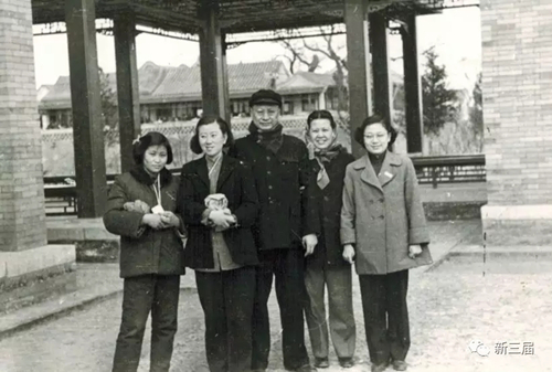 1952年母亲调干考进中国人民大学俄文系(后来和哈尔滨外院合并,成为今天的北京外语学院),外公知道了好高兴,带着婆婆和两姐妹(章湘谷,董淑萍——外公的非婚生女)到学校看望母亲,并且合影留念(下图)。