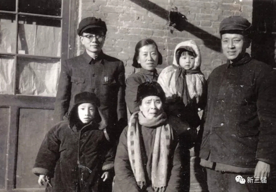 姥姥1962年已经患癌症,离开北京去包头前全家合影, 前排左起哥哥小宁、姥姥, 后排左起舅舅章翼军、妈妈、我和爸爸