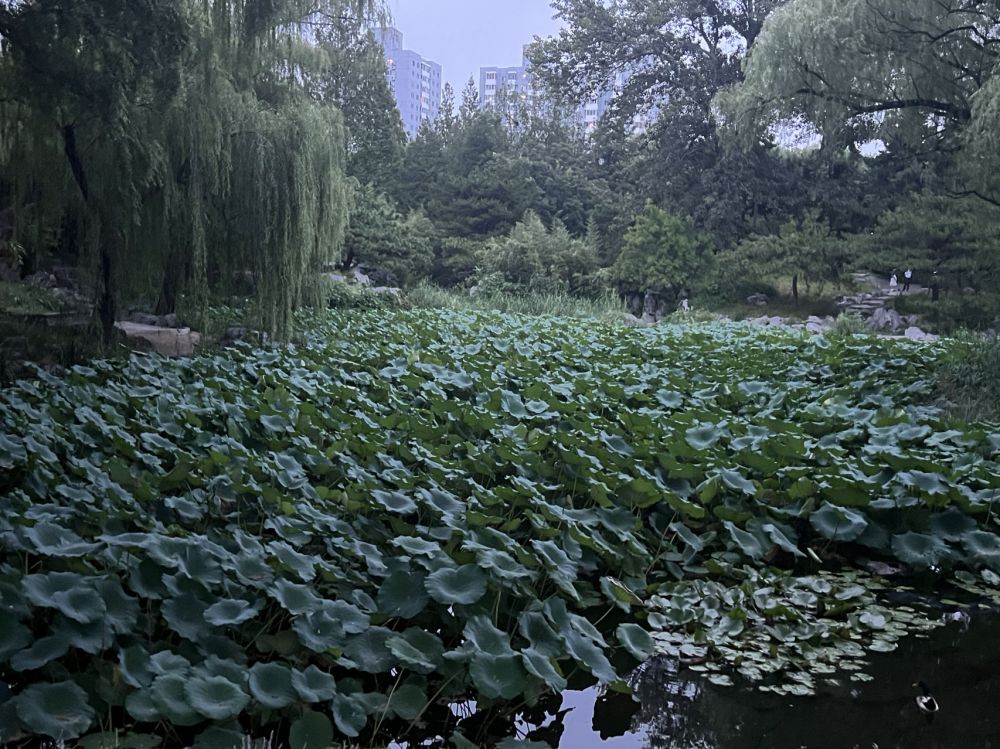 紫竹院是市民公园,里面鲜少外地游客,多是周边居民和摄影爱好者。白天的公园,湖面湖边多是带娃家庭,路上散步的多是中年夫妇和年轻恋人,公园四处零散的是打拳练功踢毽子的等等。以前还有拿大“拖把”练书法的,今年回来都没有看到。