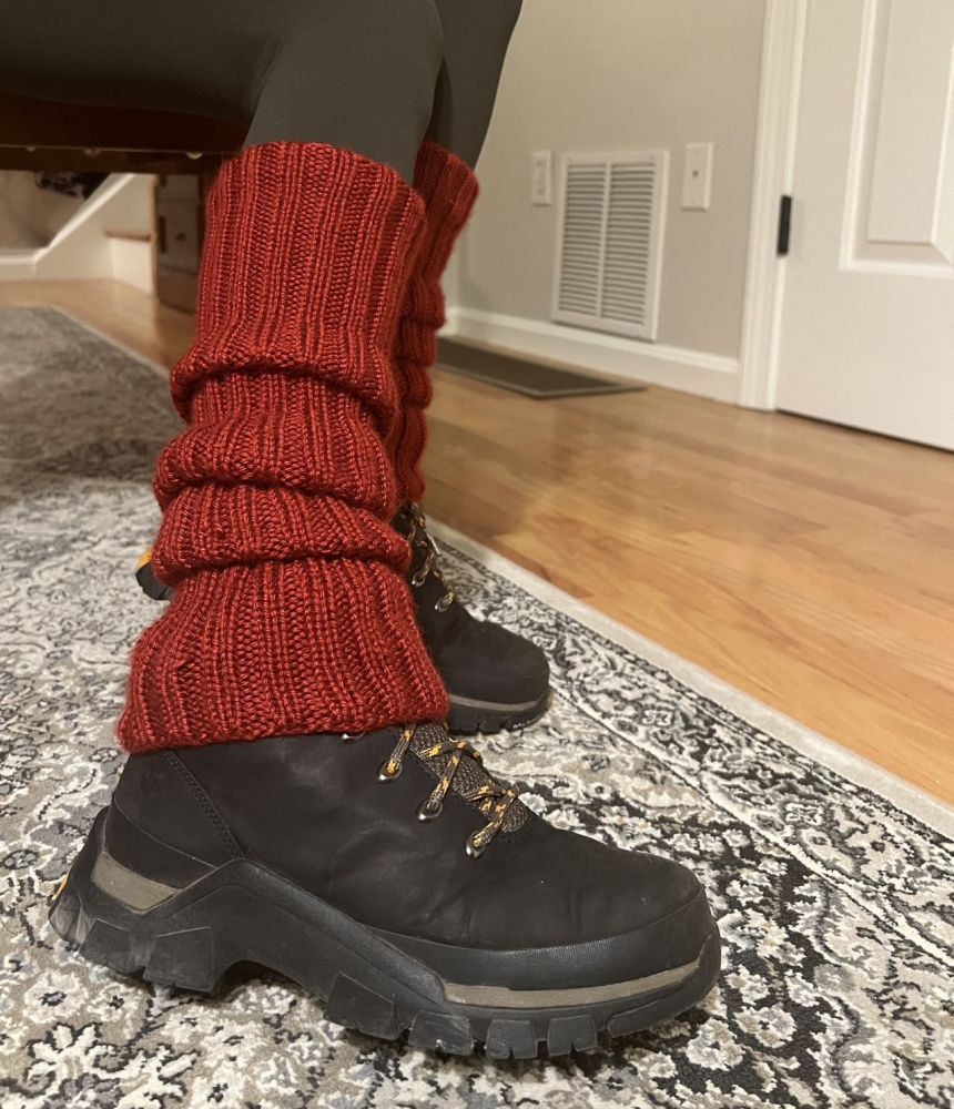 必须行。于是果断冲去MICHAEL’S,在选线买针的两天后,有了送给自己的这份新年礼物。上身一试,好生喜欢!要是你喜欢了也请一试,编织的感觉实在美妙。起针64针(德式起针法)+通篇简单织法(两针上两针下),长度50CM,完美。任何方法都可以在小红书找到,也由此萌生了我的编织梦。