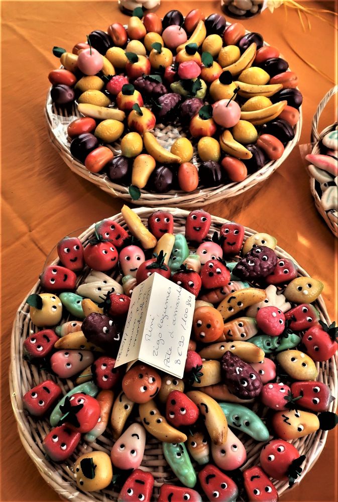 我盘子里的蔬菜,和刚摘下的水果来自附近的菜园,拌上产自当地的橄榄油和大蒜,此外,还有巧克力和做成水果状的糖果。