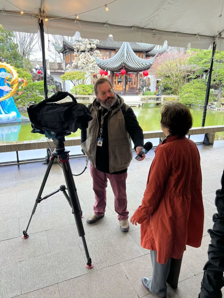 我们舞队的老导演,还受到当地电台的采访。