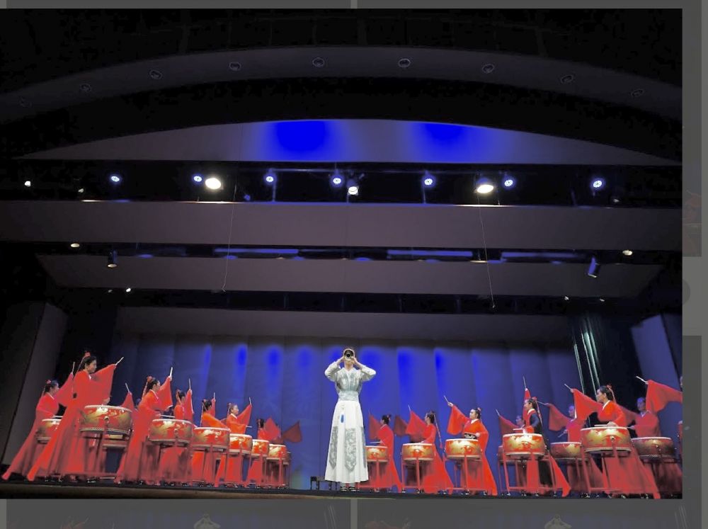 加上我的掌声。晚会好隆重,5女打绸伞的那张造型好漂亮:))