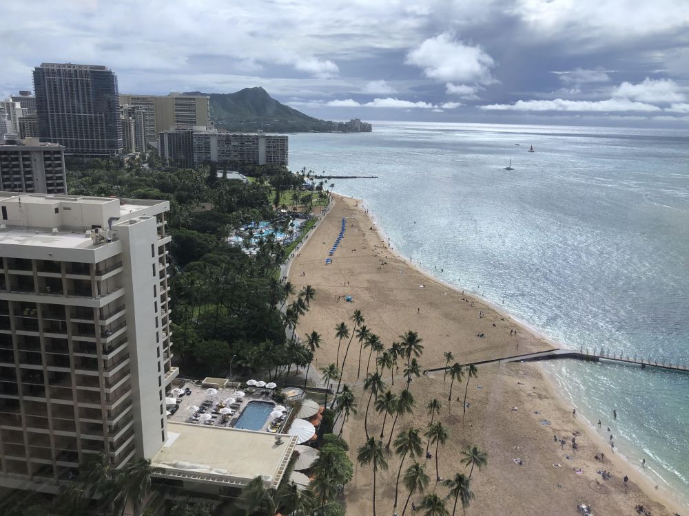 隔天下一程飞去Oahu岛, 游玩Waikiki 回到仃车场. 租的车竟然启动不了. 那是台才过二万里的车啊。猜测可能是电池问题. 当时找人帮忙. 有位好心的士兵帮着用他的车连电缆线启动,还是不行. 问题更严重,只好打租车公司应急电话. 他们派拖车来,再送我去机场换车. 花了三个多小时. 只是耽误了晚餐. 想想如果是坏在荒野,无信号? 不敢想. 换的新车,第二天就显示遥控器电量低测不到了. 这己是小事。就近买了新的扭扣电池换了,最后一切顺利.
