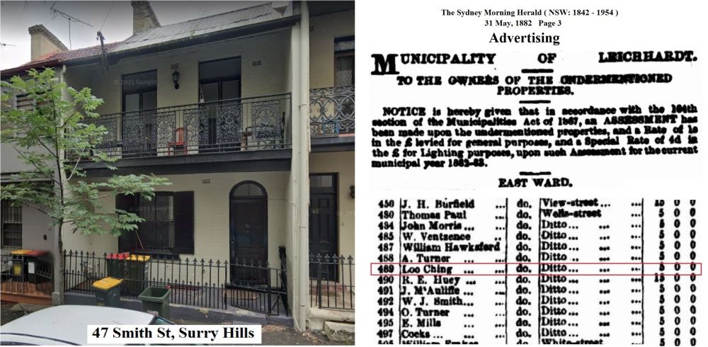 1979年鲁清迁移到雪梨47 Smith Street, Surry Hills居住,该物业应是他购买自住的,直至他逝世为止。除自住的之外,他还购置了另外两间房子出租,一间在34 Landsdowne Street, Surry Hills (注7), 另一间在West St, Leichhardt (注8);后一间房子在后来重新划区时变成在现在的Lewisham。