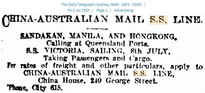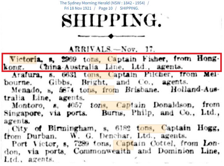 獲多利船Victoria 原屬Huddart Parker & Co.公司,中澳郵船公司購入價為75000英鎊。船重2969噸,船齡15年。原一直行走紐西蘭與澳洲之間,屬客貨兩用船,其航運消息在Trove的網頁上可隨便搜索到。