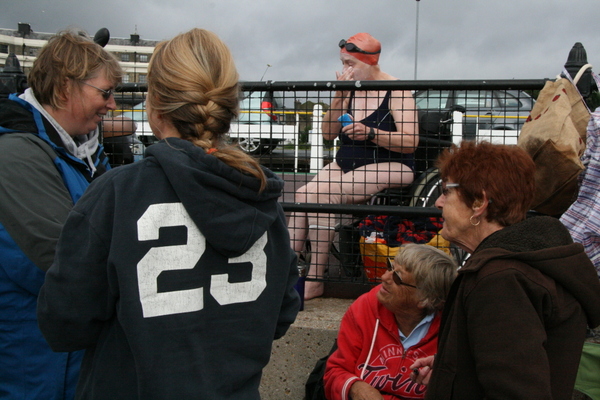 大田又和这个老太太聊上了。这位红衣老太的女儿曾经横渡海峡三十多次,包括几次横渡来回。被人们称为“海峡女皇”。有这样的女儿,老太太对横渡的事特有发言权。