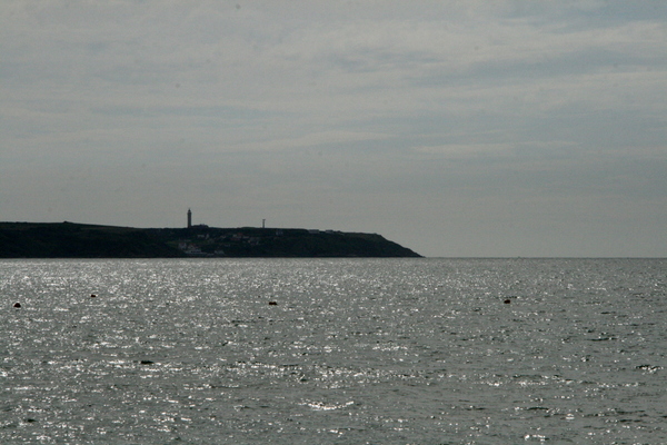 向左望去,那片伸出来的海岸就是横渡者上岸的格里内斯角了,海角上的灯塔是标志,当横渡者看见灯塔,离胜利就不远了。